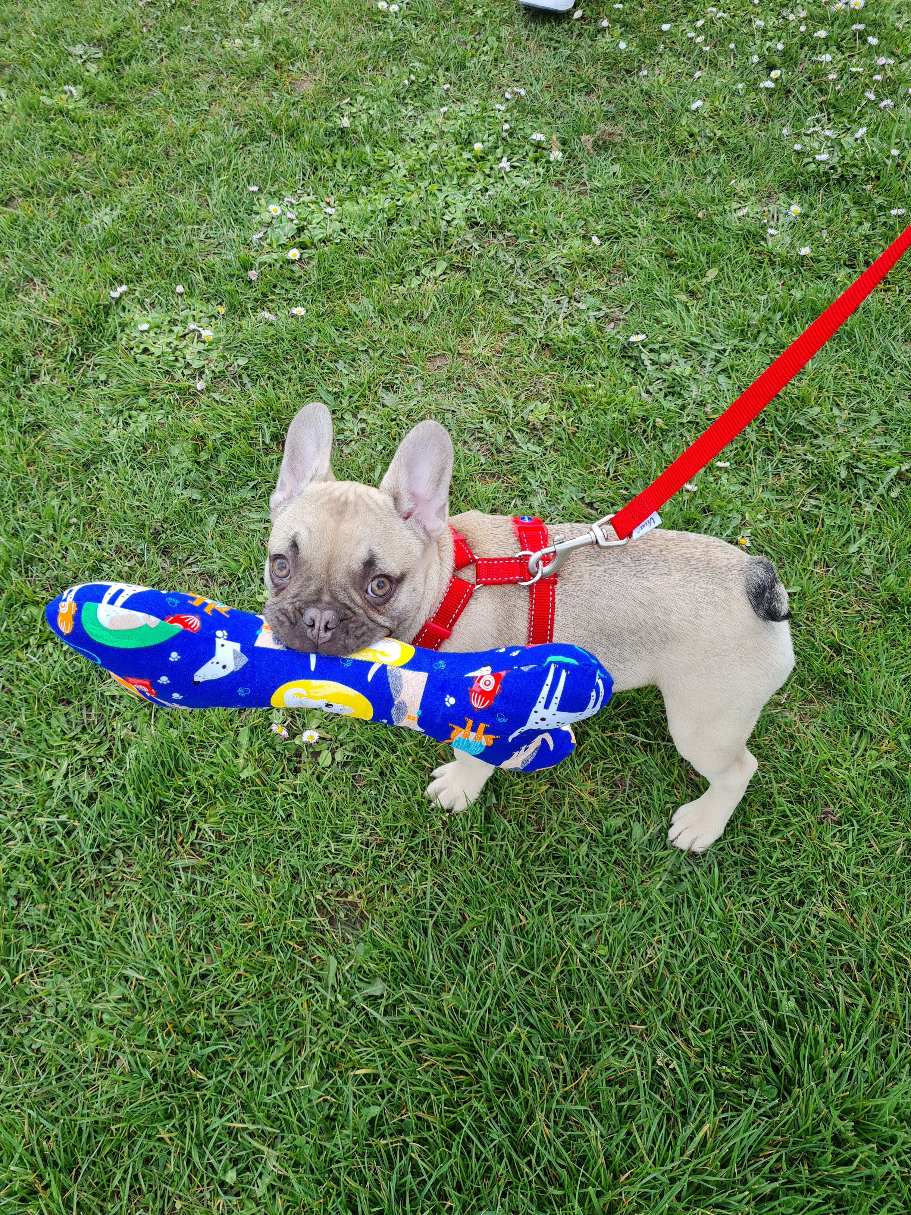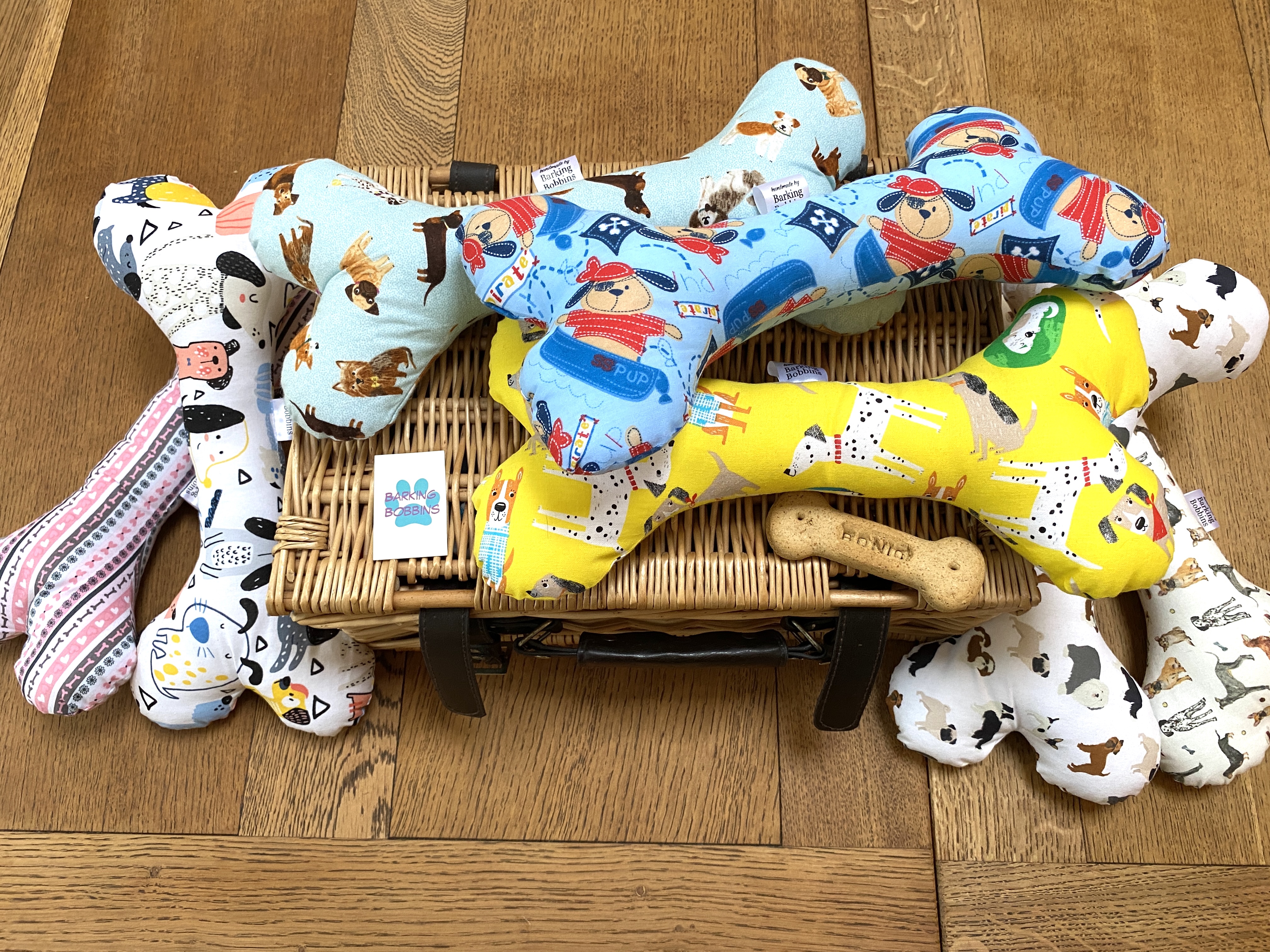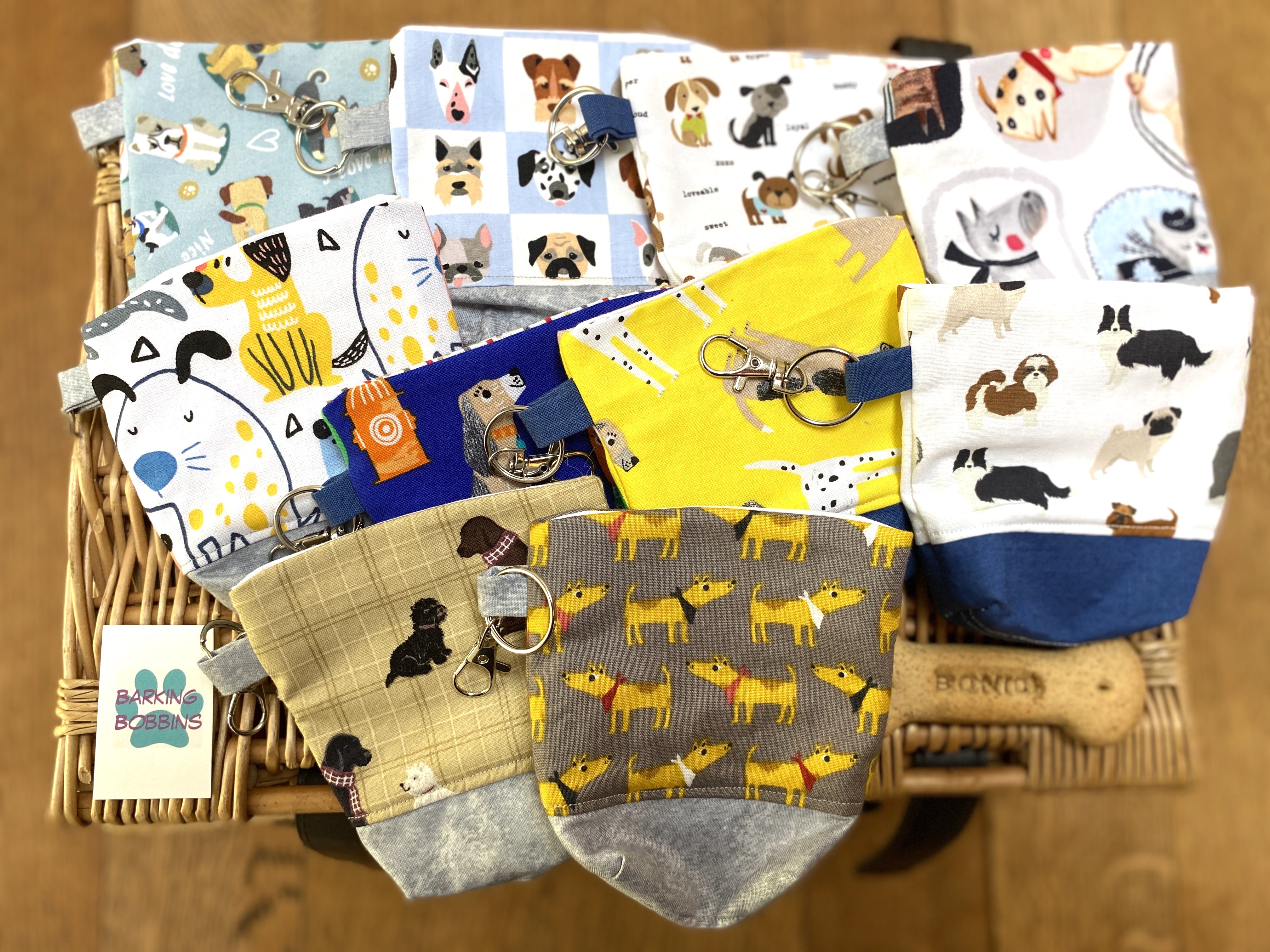 It all started with making things for our own cocker spaniel, Ella. A treat and poo-bag pouch was followed by a bandana, a squeaky bone, and a dog bed.